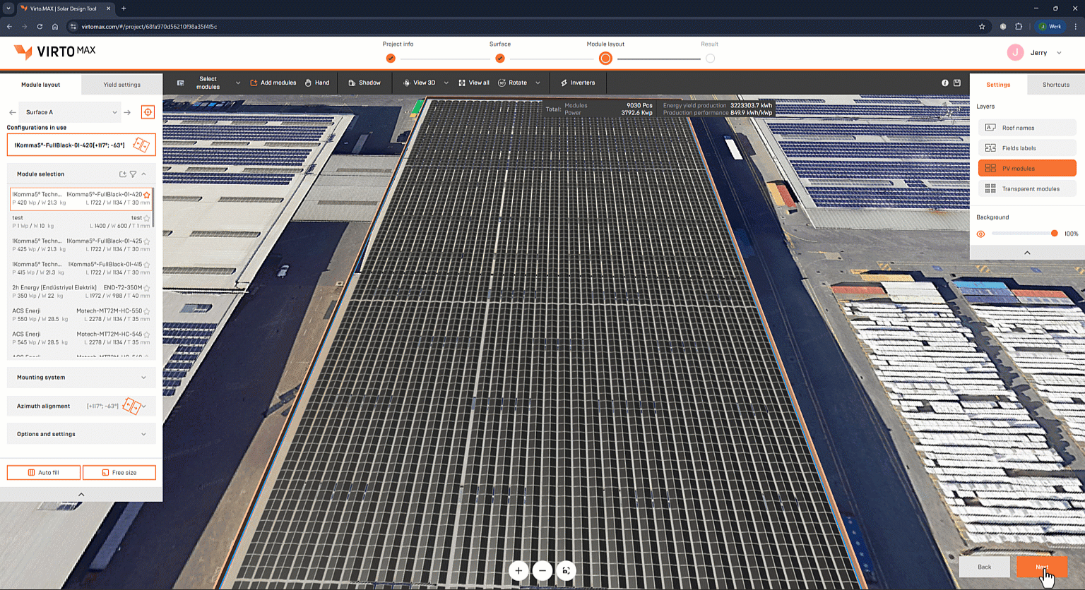 Once you have finalized your layout and added inverters using the Inverter Feature, proceed to the Components list to estimate both the required cable sizes and total quantities.
