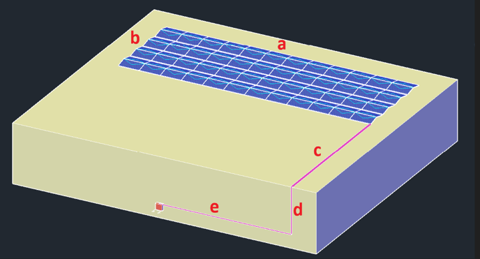 - The longest cable path, measured from the farthest module in the array to the inverter: a + b + c + d + e + StringLength*ModuleSize