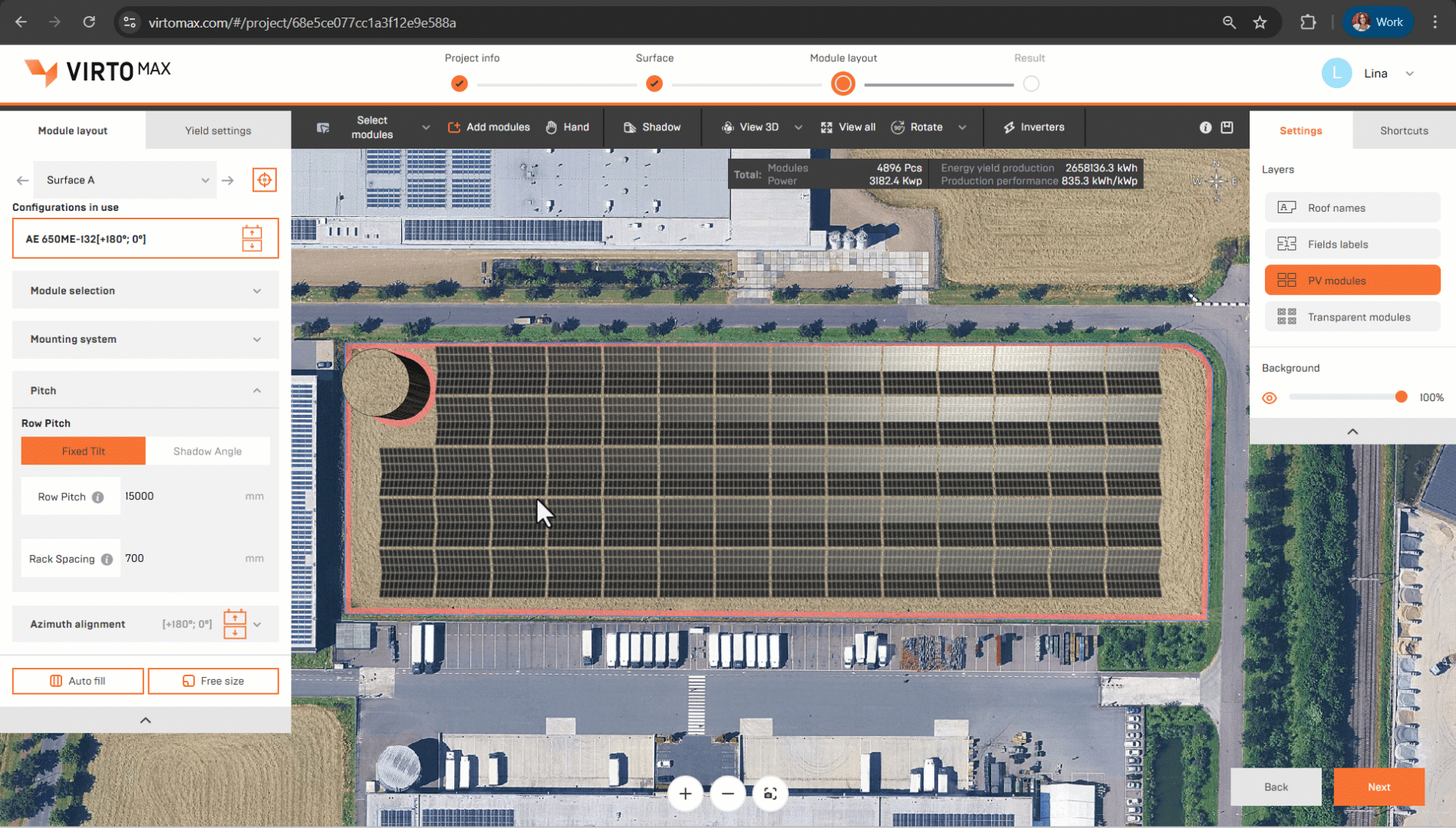 Develop utility-scale ground mount projects and carport systems in Virto.MAX by configuring custom rack systems