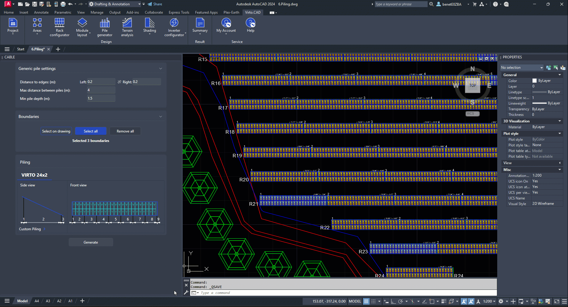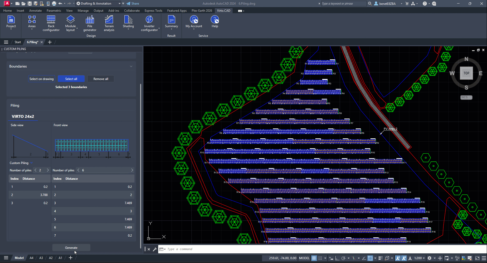 Once you have completed the Ground Layout for your project, you can move on to inserting Piles. To begin, find the Pile Generator option on the VirtoCAD ribbon.