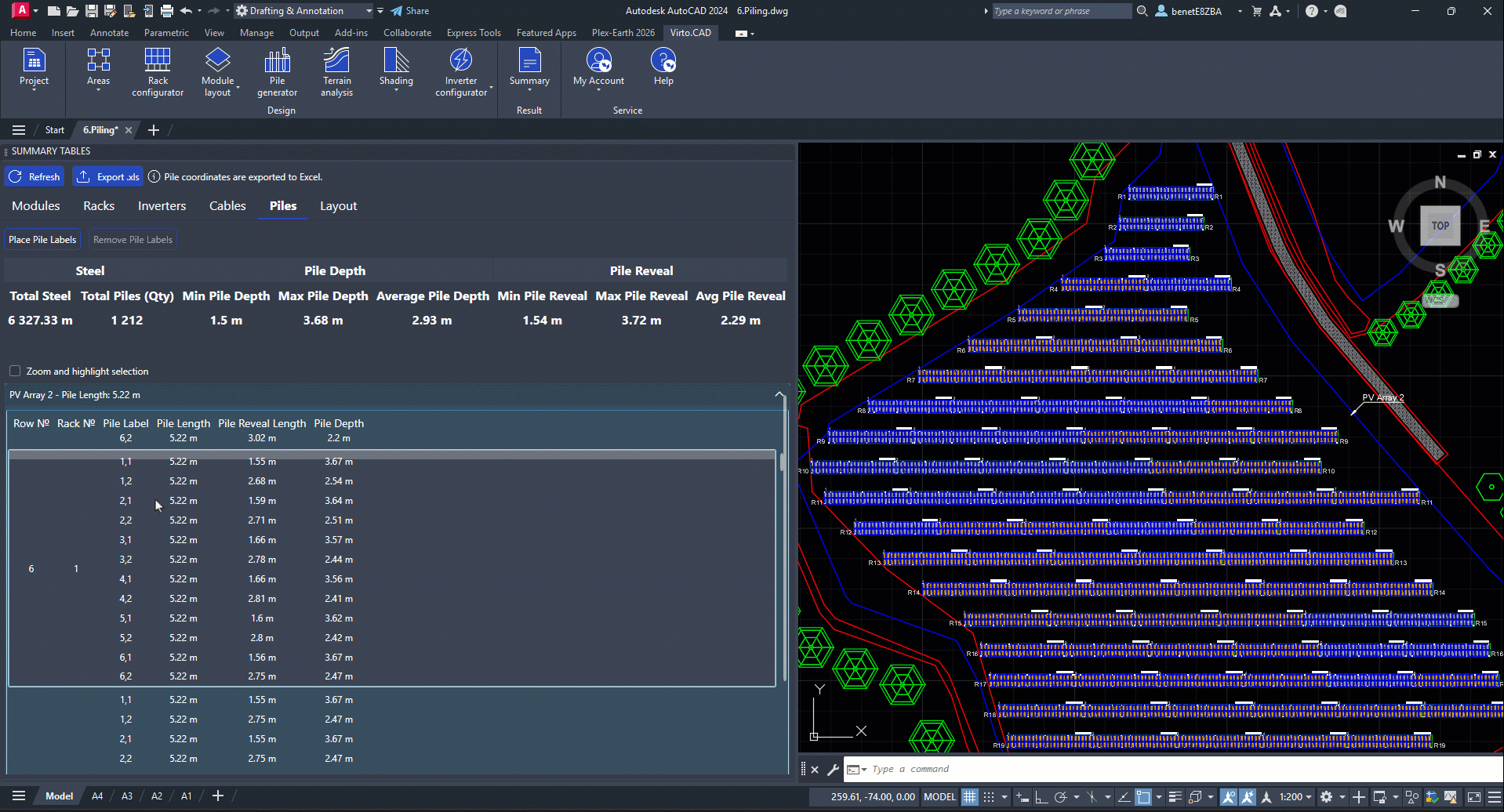 Finally, to retrieve the coordinates for each pile, simply select the Export option. This will enable you to download an Excel file that contains all the necessary coordinate information.